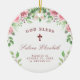 Watercolor blush pink flowers, green foliage, and leaves and a classy handwritten style calligraphy script making a beautiful girl baptism personalized Christmas keepsake white tree ornament.
