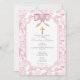 Pink Roses Greek Orthodox Christening Baptism Invitation