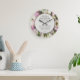 Beautiful pink and white flowers are layered in a frame around the Hebrew and English text for the Home Blessing. This clock adds a lovely floral accent to any wall.