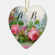PINK ROSES & JASMINES MONOGRAM Wedding Souvenir Ceramic Ornament