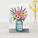 This design shows a full bouquet of flowers arranged in the center, rising from a glossy teal jar that sits on a rustic wooden tabletop with visible grain. Pink roses with curled petals mingle with yellow daisy-like blooms with warm brown centers, while deep purple lavender sprigs and soft pink daisies tuck in between fresh green leaves. The gentle way the blooms lean toward one another suggests closeness, like friends gathered in a cozy moment ❤️. On the front of the jar, the words “Mother - IN - Law” appear in a flowing, casual style, set in a darker ink that stands out against the teal. Behind the bouquet, the background fades from a light teal near the bottom into a bright white at the top, leaving plenty of airy space around the flowers. Soft, diffused lighting gives the petals a watercolor-like texture and keeps the scene calm and tender 🌼. The teal jar has a glass-like shine with subtle highlights along its curved sides.