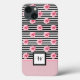 Pink Roses on Black and White Stripes with Initial Case-Mate iPhone Case