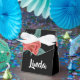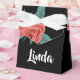 Pink roses on black favor boxes