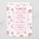 Pink roses pattern bow baby shower invitation