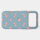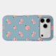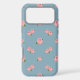 Pink Roses Pattern on Blue Case-Mate iPhone Case