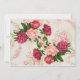 This Pink Roses Save The Date Wedding Announcement features pink roses on a rose floral background for a victorian or cottage look.