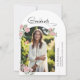 Inspired by a summer rose garden, this graduation announcement features a handwritten 'graduate' accent in signature style. Soft blush roses create a beautiful blend of classic romance and modern script typography. Add your graduate's photo in this arched frame with the combination of an arched card makes a sweet boho style graduation announcement.