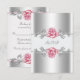 Elegant silver with pink roses 25th silver wedding anniversary RSVP response card. This beautiful silver and pink rose response card RSVP is easily customized for your event by adding your event details, font style, font size & color, and wording.