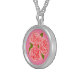 I chose gold plated so that the metal would not react with my skin oils and perspiration. But, I changed the necklace from the gold plated one to a sterling silver. My skin cells will tarnish the silver. But it will not look as bad if some portion of the gold plated necklace somehow became compromised. Zazzle did a find job turning the picture into a pendant for me. As you can see, the colors and the printing of the final product, match the preview. The picture I took is not very clear. But I am pleased with the product I received.