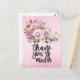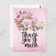 Pink roses Thank you card on pink background