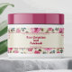 A waterproof label for cosmetics and/or soap products with a tan background and pink roses in the background. Customize it with your business and product information. This label measures 8.25 inches by 1.75 inches (209 mm by 44 mm) and is suitable for jars with a diameter of 2.6 inches (66 mm) or more and a label height area of at least 2 inches (50mm). Most 8 oz (240 ml) and 16 oz (480 ml) jars fit this description, but check the jar specifications to be sure. This label makes a great choice for packaging beauty products that require larger labels like sugar scrubs, body butters, and thick lotions and creams.