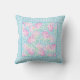 A pretty and feminine Throw Pillow or Cushion, with a pattern of bright pink roses on a sky blue background, dotted with little white butterflies, with a border of blue and white check gingham. Part of the Posh and Painterly Summer Days collection.
