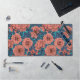 Pink roses with blue leaves on blue desk mat