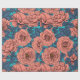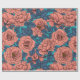 Pink roses with blue leaves on blue wrapping paper