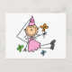 An adorable stick figure princess in a pink dress and hat picking flowers on Pink Royal Princess T-shirts, bags, cards, stickers, journals, pillows, keepsake boxes, ornaments, and other princess apparel and gifts.