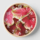 Brighten up a room with this stylish wall clock with white numerals that features the photo image of pink, ruffled Caladium leaves, a tropical plant. A lovely, floral design! Use to decorate a living room, dining room, kitchen, bedroom, or any other room. Select your clock size and style.