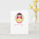 Simple, minimalistic note card featuring a kawaii style Russian Doll (also known as babushka dolls or matryoshka dolls) illustration in bright pink. Customisable with your own inner message and cover greeting.