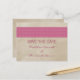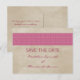 Elegant and chic Rustic Damask Save the Date Postcard featuring a vintage textured paper look background and a flourish damask pattern border in magenta. Easy to customize, simply add your wedding details. Click "Customize It" to find more personalization options.