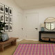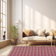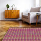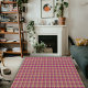 Minimalist framhouse style area rug in pink, blue and yellow color plaid, perfect for your cozy home decoration