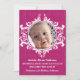 Sweet and charming Rustic Swirls Baby Announcement featuring an elegant flourish swirl ornament and a faux wood texture background in magenta. This whimsical design with vintage flair is perfect for announcing the birth of your new bundle of joy! Easy to customize, simply add the details of your new baby and replace the photo with one of your own. Click "Customize It" to find more personalization options.