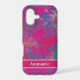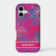 Modern pink abstract phone case design with powerful coloured shapes in an explosive pattern. This styles features fluid art elements and layered shapes in varying shades like blue, magenta, and pink. With room at the bottom to personalise with your name.
