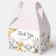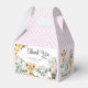 Girl safari baby shower favor boxes with adorable baby girl animals with blush pink flowers on a pretty pink dot background. These girl safari baby shower favor boxes are easily customized with your text.
