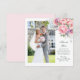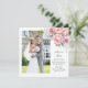 This thank you card features a photo on the front with a beautiful floral with peonies and daisies. It features a heartfelt message to thank your guests. The back is a blush pink background