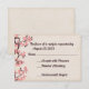 Wedding response card design featuring pink sakura blossoms on parchment-looking background.