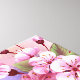 Artistically drawn, branch of pink, cherry blossoms on picturesque, textured background, painted over with white, pink and blue paint. Pink Sakura