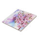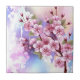 Artistically drawn, branch of pink, cherry blossoms on picturesque, textured background, painted over with white, pink and blue paint. Pink Sakura