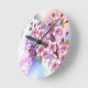 Pink Sakura on Painting Background Round Clock