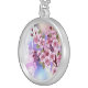 Pink Sakura on Painting Background Silver Plated Necklace