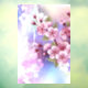 Artistically drawn, branch of pink, cherry blossoms on picturesque, textured background, painted over with white, pink and blue paint. Pink Sakura