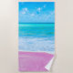 This beautiful beach towel features a gorgeous photograph of a tropical beach with pink sand.