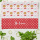 This adorable kitchen towel features a pink background with Santa, milk, and cookies and a red and white polka dot accent. Personalize with an name.