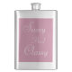 A women's hip flask design in cerise pink with white numerals reads "Sassy and Classy" A special occasion gift for weddings and bridesmaids, for her gifts.