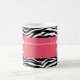 Trendy and modern Sassy Star Zebra Mug featuring a chic black and white zebra print background and a bold magenta border adorned with a fun star motif. This girly design may be customized with the personalized text of your choosing. Click "Customize It" to find more personalization options.