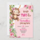 Pink Savannah Monkey Born Two Be Wild 2nd Birthday Invitation