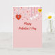 This Valentine's Day card shows a blush pink background with a group of hanging hearts near the top and a sweet message in the middle. The words “Happy Valentine’s Day” appear in smooth, flowing red letters across the center of the card. Along the upper area, several hearts hang down from thin ribbons in different colors, like they’re gently dangling in the air. On the left, a large red heart holds a smaller blue heart inside it, and on the right, a yellow heart holds a darker red heart. Between them, three white hearts hang in a row, keeping the look simple and calm. Small hearts and stars in red, blue, white, and a few warm brown tones are scattered around like little bits of confetti, adding a cheerful feel 💕❤️. It’s an easy, sweet design that feels perfect for romance or close friendship, so go ahead and pass along some Valentine’s Day love to someone you care about 😘.