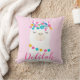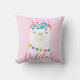 This sweet nursery pillow features an adorable illustrated llama with colorful tassels and pom-pom details on a soft pink background. The child's personalized name is displayed in a beautiful flowing script, making it a standout monogram keepsake. A charming accent for a llama-themed nursery, bedroom, or playroom. Customize the name for a truly special gift.