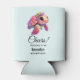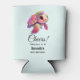 Can cooler with a cute illustration of a sea turtle. Pink body and shell with a floral topping. Looks happy and adorable.