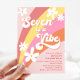 Pink Seven Is a Vibe Retro Daisy Rainbow Birthday Invitation