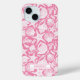 Customize this pink shell pattern iPhone 15 case with your your name in a trendy modern CAP font in pink on white. It's so modern and beachy!