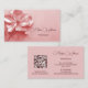This elegant luxury business card features a 3 D pink shiny metallic flower and an elegant handwritten script. On the reverse side is a scannable qr code and a custom template for name, address and socials. This professional glam business card is perfect for salon, make up artists, jewelry and more.