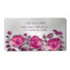 This elegant floral business card features delicate hot pink blossoms on a silver background.