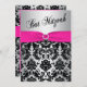 Pink, Silver, and Black Damask Bat Mitzvah Invite
