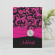 Pink, Silver, Black Damask Sweet 16 Invitation