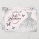 Pink Silver Butterfly Sparkle Dress Quinceanera Invitation