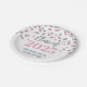 Customizable graduation party class of 2025 plates in glamorous silver and pink confetti pattern and elegant hand lettered style text.