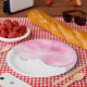 Paper plates with a stylish pink border with a silver glitter edge (faux glitter).